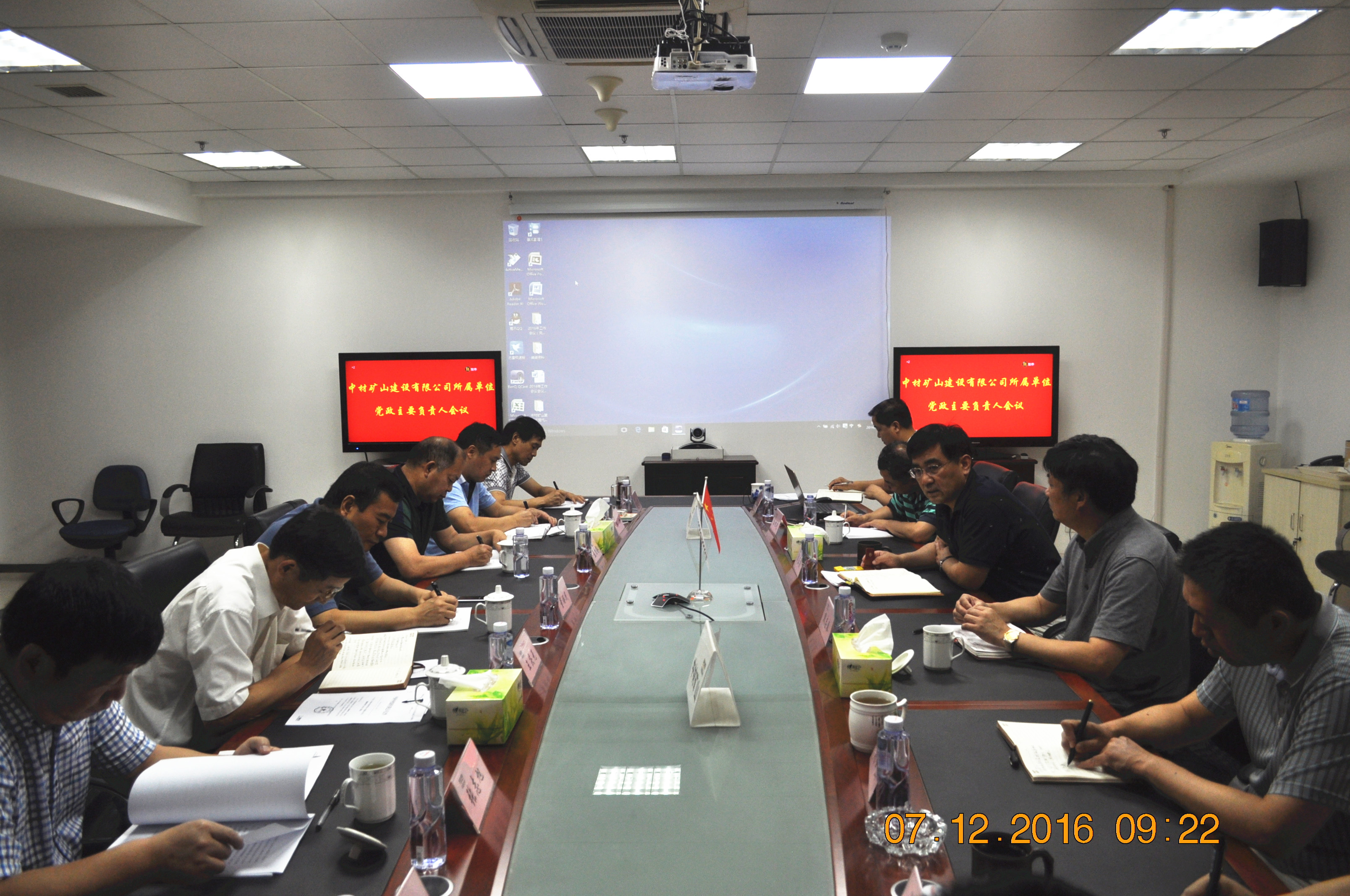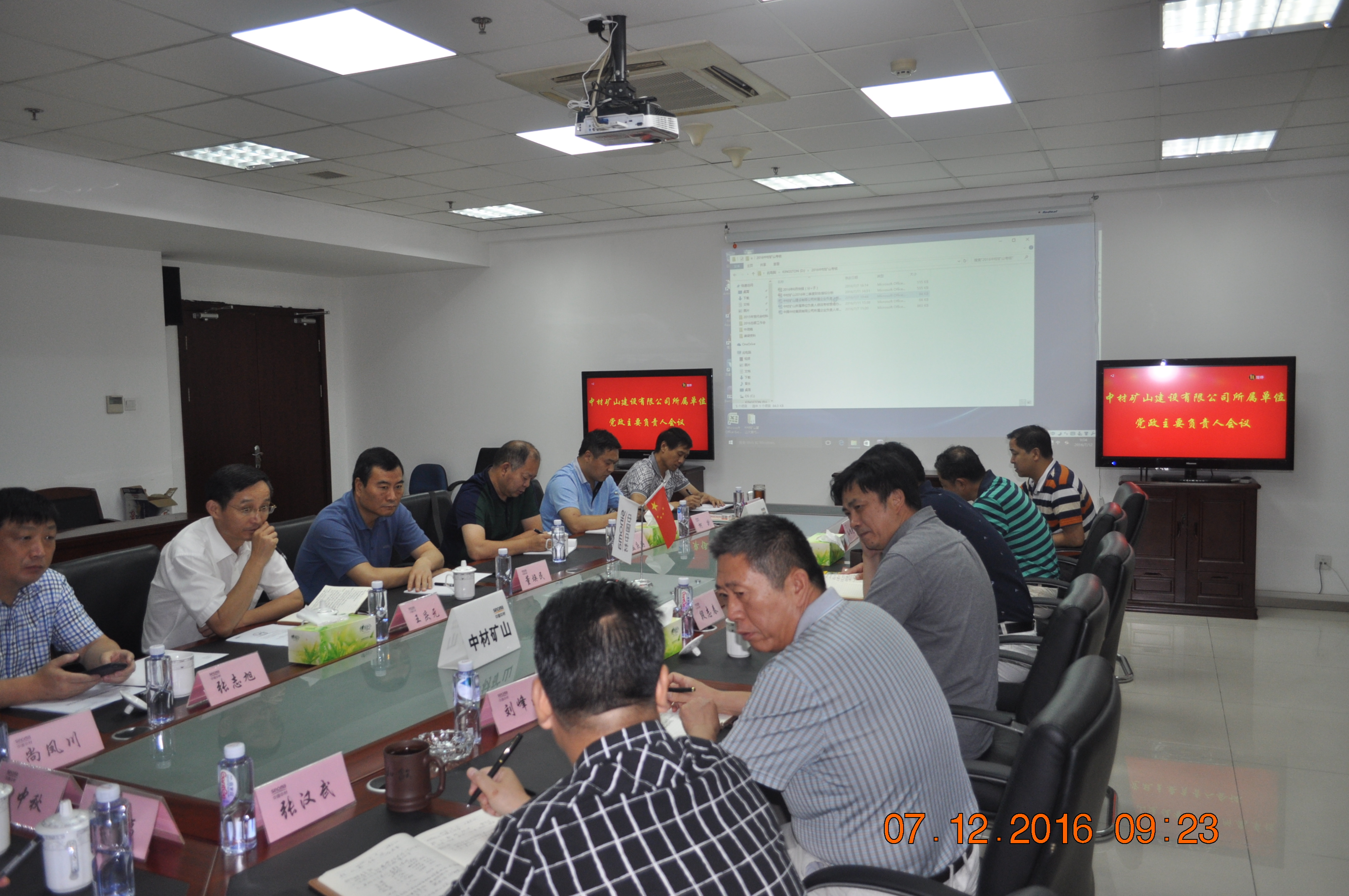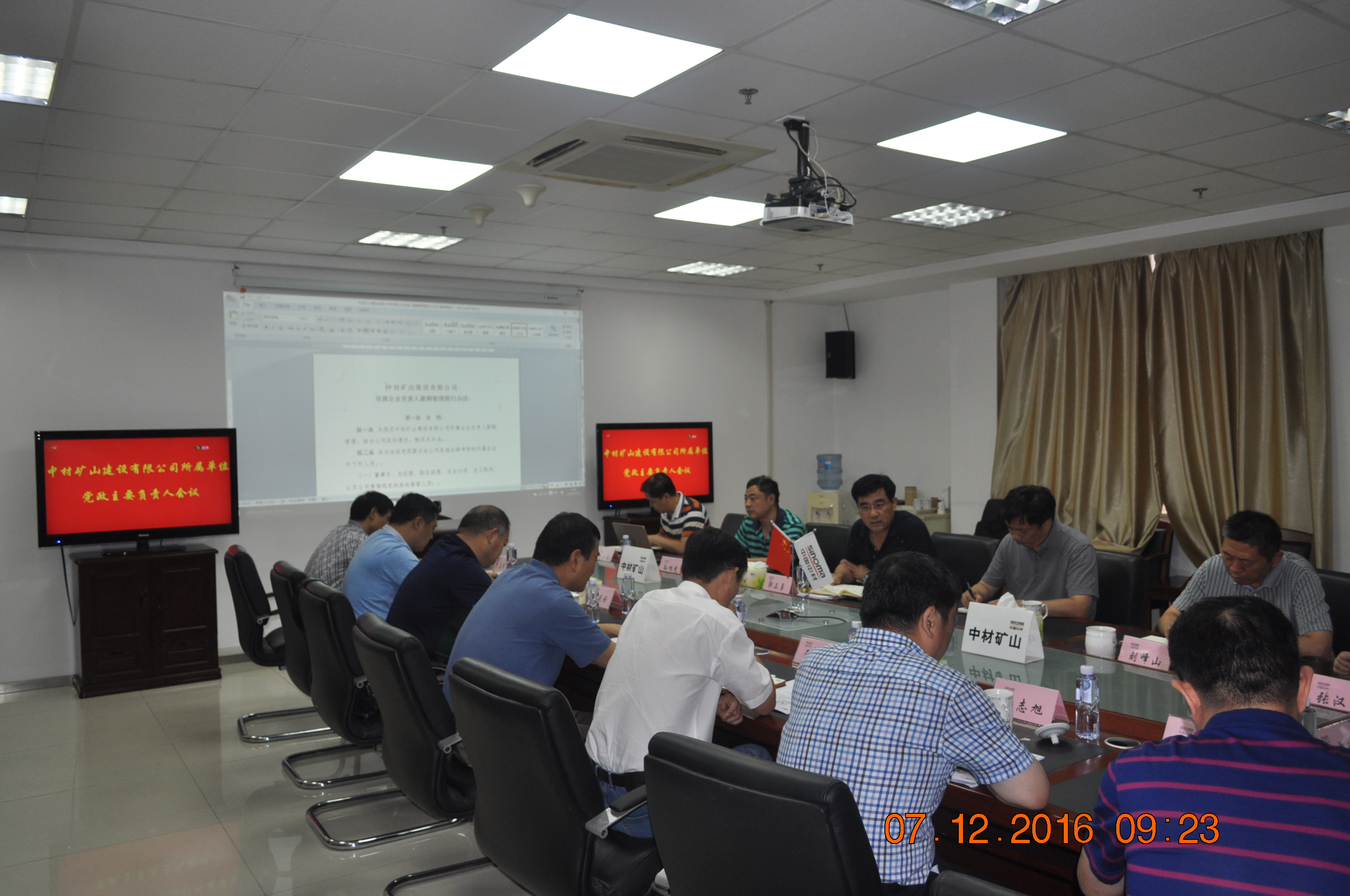 中材礦山建設有限公司所屬單位黨政主要負責人會議暨2016年年中工作會議于2016年7月12日在中材礦山總部召開,公司領導班子、部門負責人和所屬單位黨政主要負責人參加了會議,會議由總經理郭正勇同志主持。